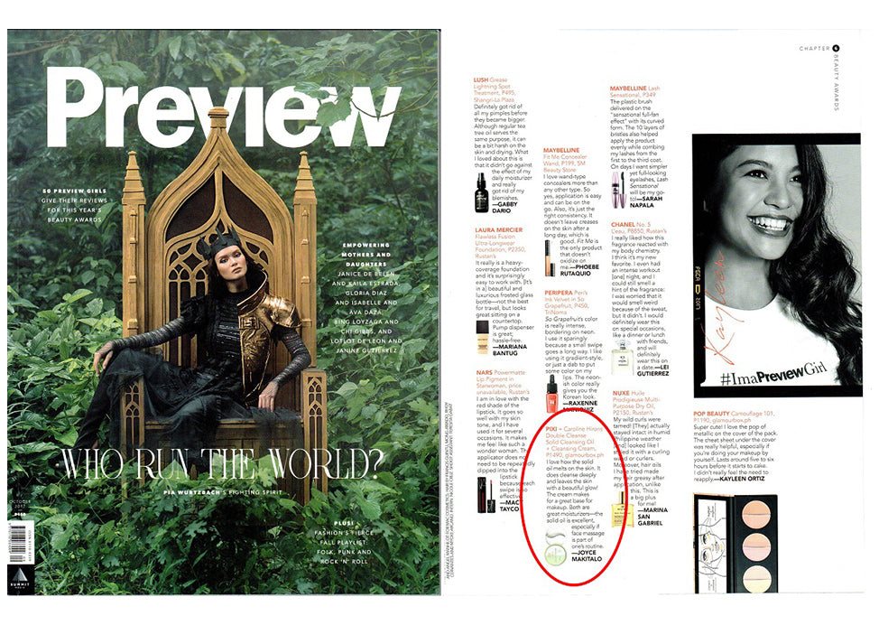 Pixi + Caroline Hirons's product Double Cleanse mentioned in Preview Magazine's "Beauty Awards."